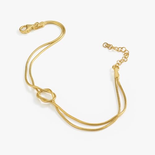 - 14K Gold Vermeil Knot Bracelet: This elegant bracelet features a timeless knot design, symbolizing unbreakable bonds and eternal love. The 14K gold vermeil finish ensures a luxurious and lasting shine, making it an exquisite addition to any jewelry collection.