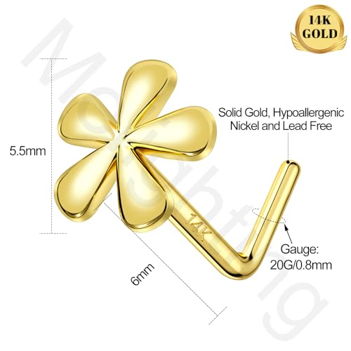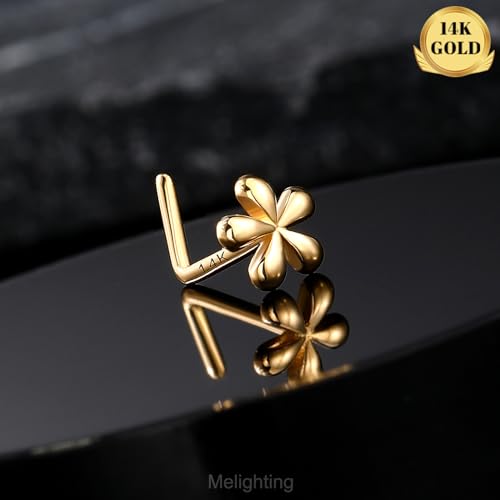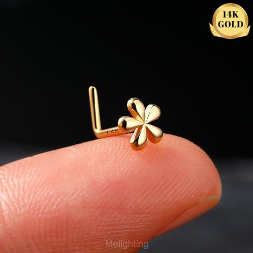 • 14k Gold Nose Ring: One Order Includes 1Pcs 20G L-Shaped 14K Solid Gold Nose Stud with Flower for Women or Men.