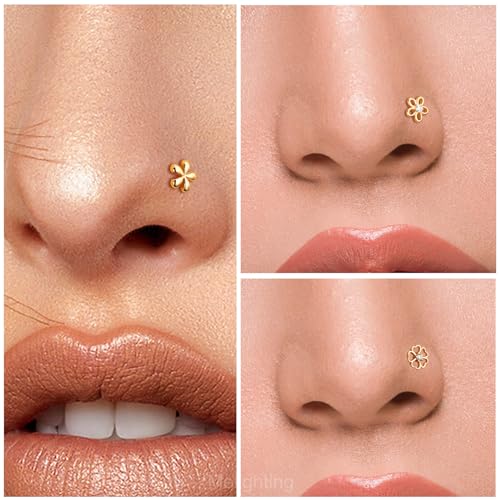 MeIighting Solid Gold Flower Nose Stud 20G Gold Nose Ring L Shaped 14K Solid Gold Nose Piercing Jewelry for Women Real Gold Nose Screw for Women